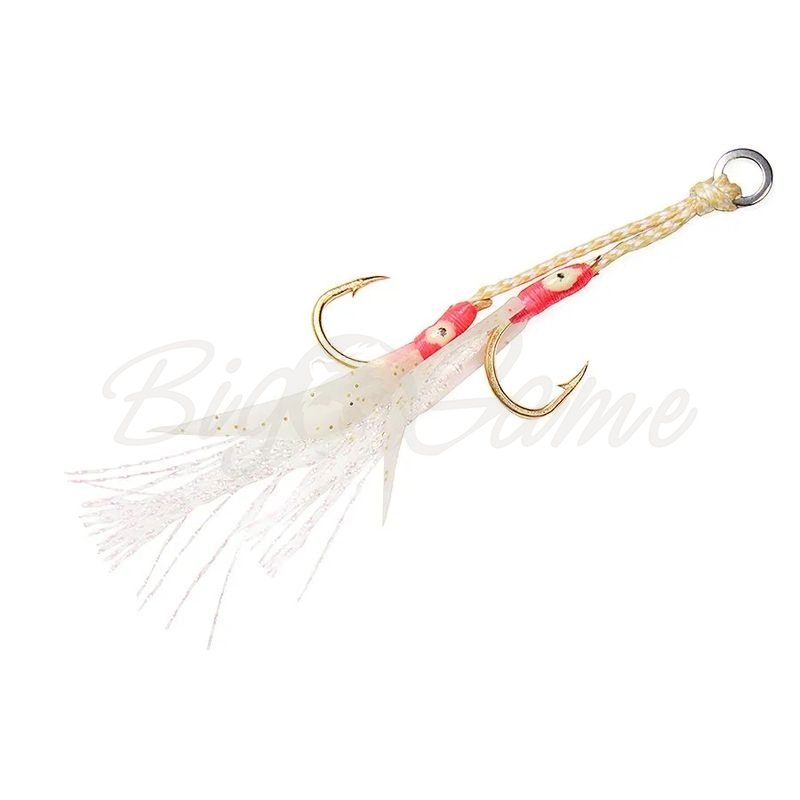 Оснащенный силиконой приманкой и люрексом двойной ассистхук от Asari. Отлично подойдет для оснащения пилькеров для береговой или бортовой рыбалки. Может использоваться, как основной, так и вспомогательный крючок.