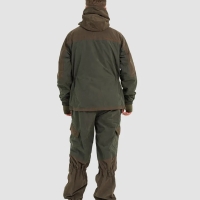 Костюм прекрасно вписывается для активного отдыха так и охоты и рыбалки. Способен выдержать довольно сильный дождь и мокрый снег, что подтверждают наши испытания. Проклеенные швы и влагозащитные молнии в цвет основного принта ткани защищают от попадания влаги. Внутренний теплый и мягкий флисовый слой создает дополнительный комфорт, а также позволяет коже дышать, отводит влагу от тела, быстро сохнет, обладает теплоизолирующими свойствами.