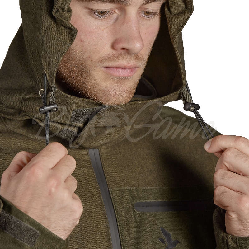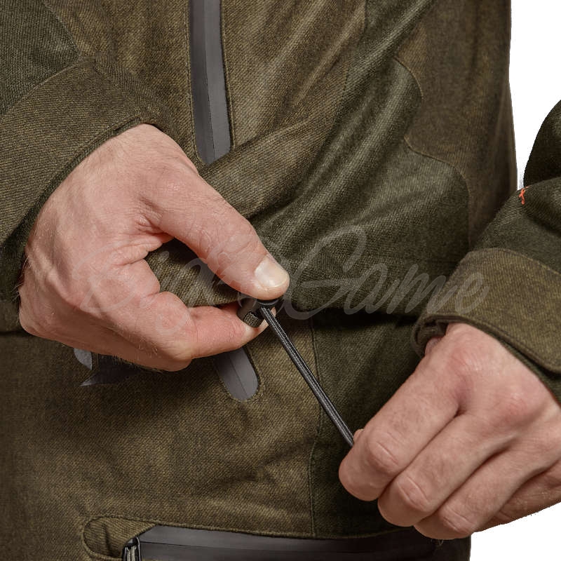 Изготовлена из малошумной трикотажной ткани с матовой отделкой сдержанного темно-зеленого цвета, что позволяет ей вписываться в большинство мест для охоты. Куртка также оснащена двухслойной ветрозащитной и водонепроницаемой мембраной SEETEX ® с показателем давления водяного столба 10 000/10 000 мм, которая сохранит вас сухими, даже если вы попадете под ливень. Куртка имеет два больших передних кармана и карман для рации на левой стороне груди, все они застегиваются на водонепроницаемые молнии. Внутри есть карман с застежкой для вашего мобильного телефона или аналогичных устройств, которые вам не должны мешать. Куртка Avail также имеет регулируемые манжеты на липучках и эластичные завязки на капюшоне и нижней кромке. Капюшон съемный, с загибающимися полями. Куртка застегивается на двустороннюю основную молнию, а все молнии на одежде снабжены хлястиками, поэтому ими легко пользоваться даже замерзшими пальцами.