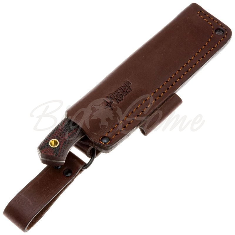 В комплекте с ножом идут кожаные ножны, которые обеспечивают безопасное хранение и транспортировку ножа, а также удобный доступ к нему в любой момент. Конструкция ножен позволяет носить нож как на поясе, так и на рюкзаке, что делает его ещё более универсальным.