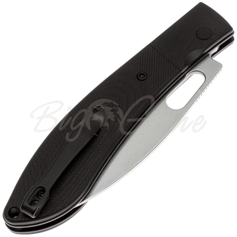 Рукоять сочетает стальные больстеры с накладками из G10, что делает конструкцию одновременно прочной, долговечной и визуально сбалансированной. Эргономичная форма и уверенная текстура обеспечивают комфортный хват даже при длительной работе. Установлена переставляемая стальная клипса глубокой посадки, обеспечивающая надёжное скрытое ношение. Также предусмотрено отверстие под темляк, что оценят любители персонализации и удобства при извлечении ножа из кармана.