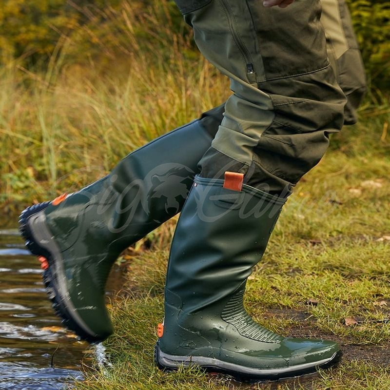 Viking Elk Hunter Light, как и все модели Viking, произведены из легкого натурального каучука (LWR). В зоне пяток и пальцев усиленные вставки. Уникальный рисунок протектора подошвы Viking UGC® (Ultimate Grip Concept) обеспечивает хорошее сцепление даже на самом сложном ландшафте. Формованная мягкая стелька из EVA повышает комфорт при длительном ношении сапог. Регулируемые голенища позволяют отрегулировать посадку. Стелька вынимается.