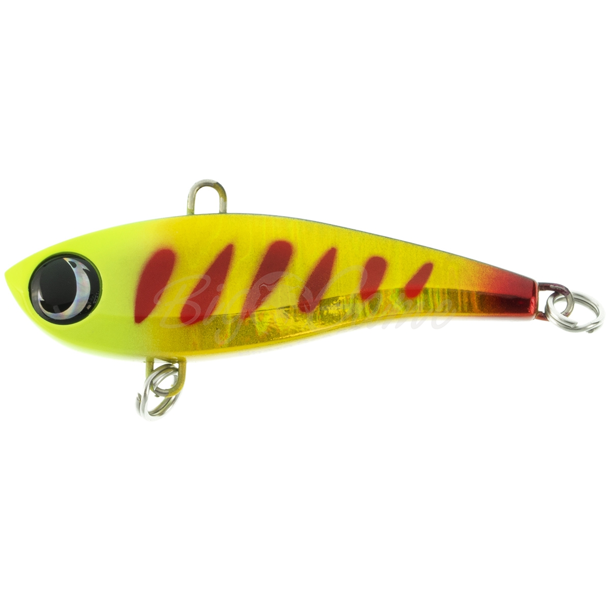 Прогонистое тело, с четко очерченным ребром дает этому вибу яркую игру, особенно выраженную на активных вертикальных подбросах. Интенсивность взмаха хлыстом удилища позволяет регулировать мощность его вибрации — чем быстрее производится подброс приманки, тем сильнее будет вибрировать Chata Bee.