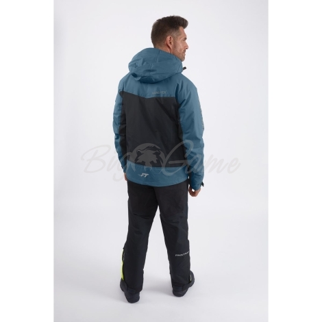 предотвращает впитывание вязкой грязи и влаги, препятствуя появлению на поверхности следов и разводов. Структура ткани позволяет находиться под дождём и мокрым снегом, сохраняя тепло и комфорт при температуре до -20°C. Артикулированный крой учитывает анатомию человеческого тела и обеспечивает полную свободу движений. Функциональный дизайн модели объединяет в себе продуманные детали и оригинальную синюю расцветку. Центральная двухзамковая тракторная молния с планкой обеспечивает прочное соединение и защиту от воды и ветра. На куртке расположено шесть карманов: четыре внешних с влагозащитными молниями и два внутренних, один из которых можно использовать для гаджетов, а второй для головного убора. Мягкий микрофлис на высоком вороте предотвращает натирание подбородка и создаёт дополнительное тепло. Внутренние эластичные манжеты и внешние из прорезиненного материала препятствуют попаданию воды и грязи внутрь. Регулируемая кулиса в районе пояса позволяет настроить наиболее комфортную посадку. На куртке расположены дополнительные полукольца, которые надёжно фиксируют чеку безопасности квадроцикла.