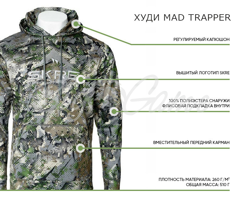 Толстовка SKRE Mad Trapper Hoodie цвет Summit – данный товар доступен для заказа в интернет-магазине BigGame по цене 8 990 руб. с доставкой в Красноярске и по всей России. Для того, чтобы купить данный товар, положите его в корзину или позвоните по телефону +7 (391) 216-79-00