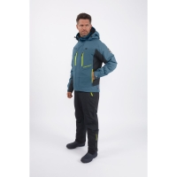 предотвращает впитывание вязкой грязи и влаги, препятствуя появлению на поверхности следов и разводов. Структура ткани позволяет находиться под дождём и мокрым снегом, сохраняя тепло и комфорт при температуре до -20°C. Артикулированный крой учитывает анатомию человеческого тела и обеспечивает полную свободу движений. Функциональный дизайн модели объединяет в себе продуманные детали и оригинальную синюю расцветку. Центральная двухзамковая тракторная молния с планкой обеспечивает прочное соединение и защиту от воды и ветра. На куртке расположено шесть карманов: четыре внешних с влагозащитными молниями и два внутренних, один из которых можно использовать для гаджетов, а второй для головного убора. Мягкий микрофлис на высоком вороте предотвращает натирание подбородка и создаёт дополнительное тепло. Внутренние эластичные манжеты и внешние из прорезиненного материала препятствуют попаданию воды и грязи внутрь. Регулируемая кулиса в районе пояса позволяет настроить наиболее комфортную посадку. На куртке расположены дополнительные полукольца, которые надёжно фиксируют чеку безопасности квадроцикла.