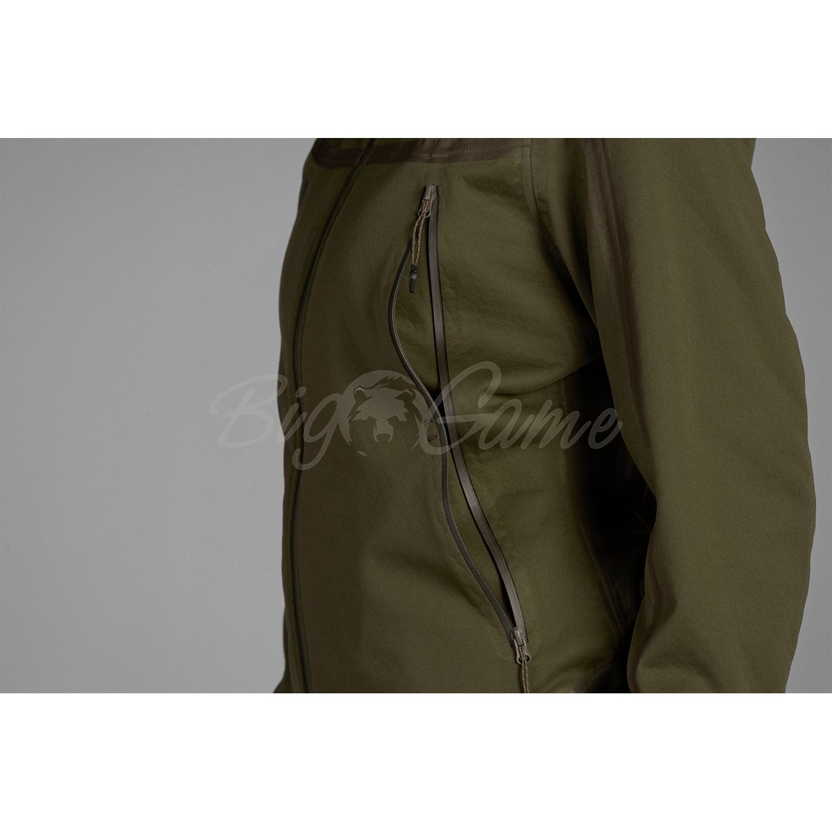 На передней части куртки имеется система карманов с четырьмя карманами, скрытыми за двумя водонепроницаемыми молниями, которые открываются сверху или снизу. В сочетании с брюками этой же серии вы получаете прекрасный женский костюм для всех видов охоты независимо от погодных условий.