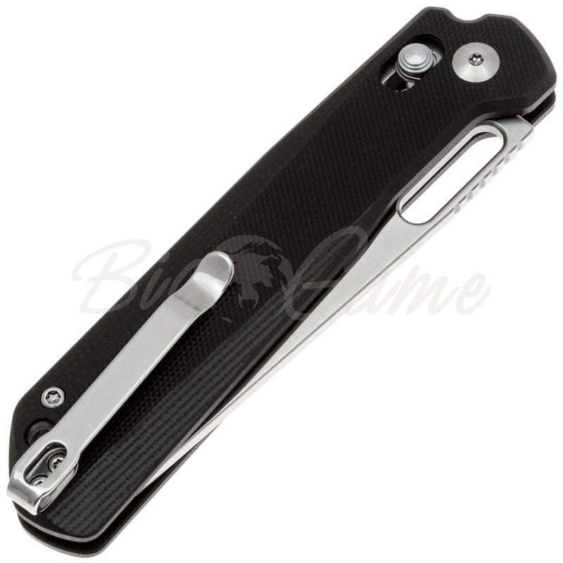 Рукоять выполнена из G10, с лёгкой текстурой для надёжного хвата в перчатках и без. Материал не боится влаги, ударов и температурных перепадов, что делает его отличным выбором для ножа тактической направленности. Установлена глубокая клипса из нержавеющей стали, которую можно переставить на другую сторону, обеспечивая удобство как правшам, так и левшам.