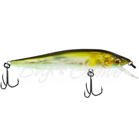 Megabass Vision 95 Q-GO - это мелководный минноу длиной чуть меньше 4 дюймов. Но далеко не обычный минноу. Поведение этой приманки в воде определяется уникальной системой балансировки Shaft Balancer (Pat.). Это круглый в сечении и достаточно длинный вал сложной конфигурации. Он имеет сравнительно большой вес относительно веса самой приманки и зафиксирован в нижней ее части. Результат – абсолютно уникальная игра приманки. Поскольку центр тяжести приманки Vision 95 Q-GO сосредоточен в области вала, тело Vision ведет себя как маятник, закрепленный на его оси. Следовательно, в рабочем состоянии он и колеблется именно относительно этой опоры. Поскольку, как упоминалось ранее, само тело воблера очень легкое (общий вес приманки определяется большей частью весом балансира), Megabass Vision 95 очень чувствителен даже к минимальному на него воздействию. Вот почему ему все равно какова скорость проводки. Подматываете ли вы леску медленно, быстро, очень быстро или вообще остановили подмотку – приманка не перестает играть.