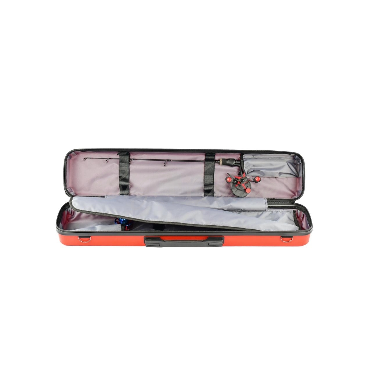 Внутри кейса 2 отсека для удилищ.
