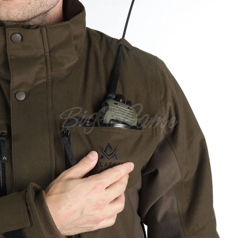 Куртка Tundra изготовлена из высококачественного, бесшумного материала, с лучшим покрытием APS. Швы куртки проклеены, что делает их водонепроницаемыми. Длинная куртка повышает комфорт в холодную погоду. Имеет нагрудные карманы на молнии, карман для радио, два нижних кармана с клапанами и карманы для утепления. Кроме того, куртка имеет регулируемый капюшон и манжеты для защиты от ветра и холода.
