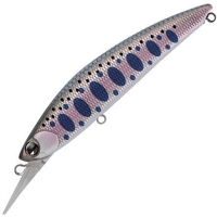 Тяжелый форелевый воблер от японской компании IMA с успехом противостоит сильной струе и быстро направляется на дно реки. Рекомендация: минимизируйте кол-во шнура в воде, для этого просто держите спиннинг вверх, чтобы позволить прогонистому корпусу интенсивно сиять на свету, переваливаясь с боку на бок. Характерная широкая лопатка приманки помогает быстро уйти на нужную глубину и в то же время не мешает игре на быстром течении.