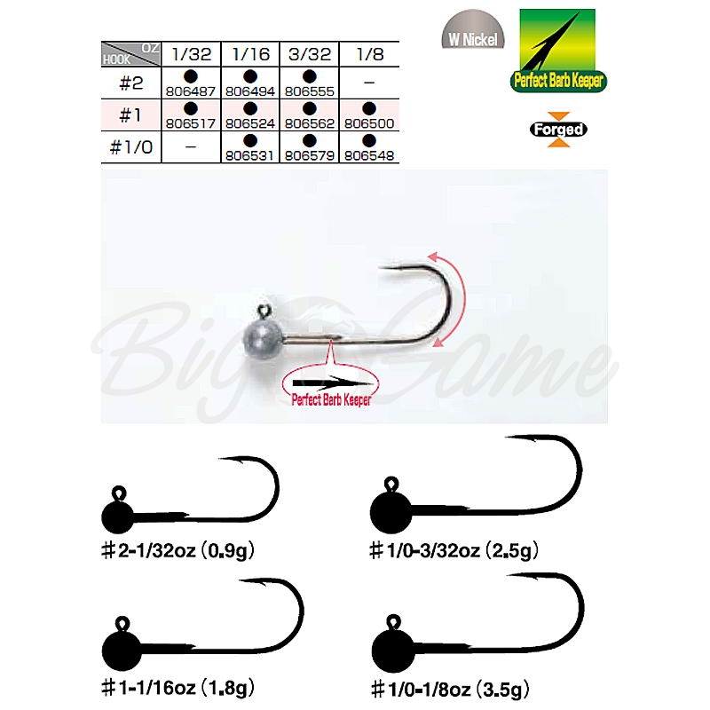 Джиг-головки этой серии комплектуются легкими грузами и крючками достаточно большого размера, что позволяет оснащать ими крупные приманки при ловле на мелководье. Крючки выполнены из прочной высокоуглеродистой стали. Поддев крючков кованый.