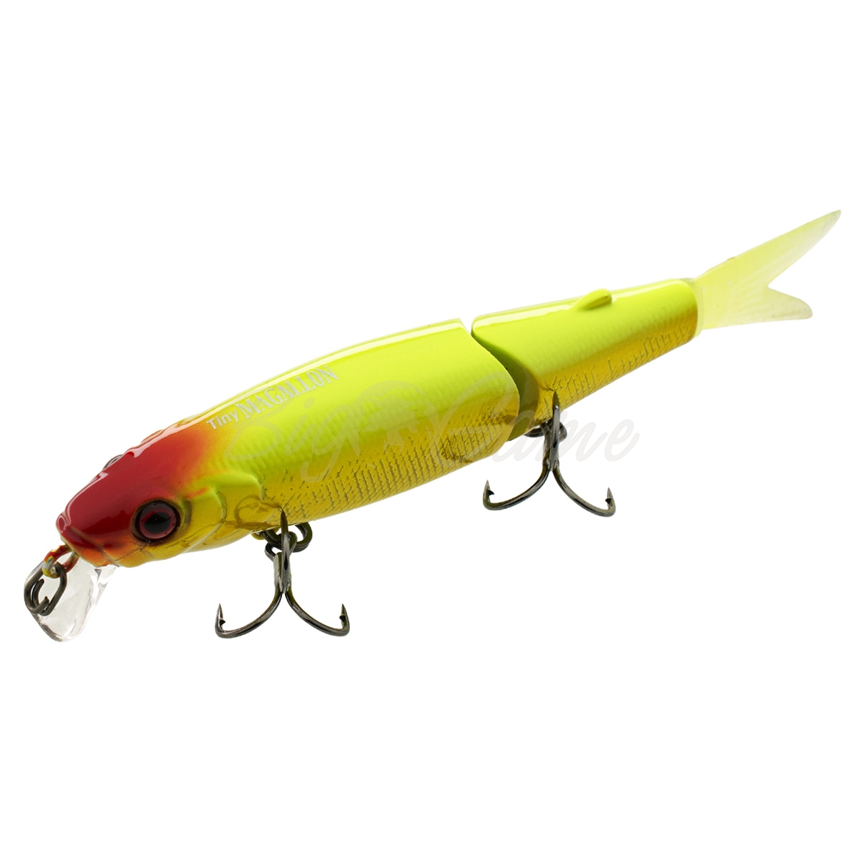 Tiny Magallon – двухсоставной воблер с оригинальным дизайном. В хвостовой части располагается мягкий, но стойкий к щучим зубам, хвостик, который при проводке дополнительно соблазняет рыбу. Даже при малой амплитуде рывков спиннинга совершает размашистые развороты и кульбиты в воде, соблазняя даже не активного хищника. Одна из самых добычливых приманок по щуке!