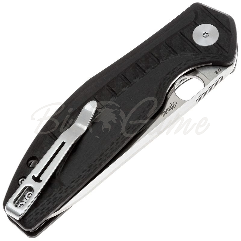 Рукоять выполнена из G10 — прочного стеклотекстолита, стойкого к влаге, перепадам температуры и механическим нагрузкам. Поверхность G10 обеспечивает уверенное сцепление даже с мокрой рукой. Клипса обеспечивает удобное ношение в кармане. Также предусмотрено отверстие под темляк, что удобно для персонализации или крепления страховочного шнура.