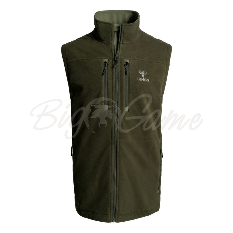 Этот жилет, изготовленный с использованием эластичной мембраны Kings Wind-Defender, на 100% ветро- и водонепроницаем, защищает от непогоды и сохраняет воздухопроницаемость. Бесшумный внешний слой из проклеенного флиса. Технология Polygiene Odor Control помогает избежать запахов во время длительной охоты.