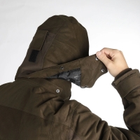 Куртка Tundra изготовлена из высококачественного, бесшумного материала, с лучшим покрытием APS. Швы куртки проклеены, что делает их водонепроницаемыми. Длинная куртка повышает комфорт в холодную погоду. Имеет нагрудные карманы на молнии, карман для радио, два нижних кармана с клапанами и карманы для утепления. Кроме того, куртка имеет регулируемый капюшон и манжеты для защиты от ветра и холода.