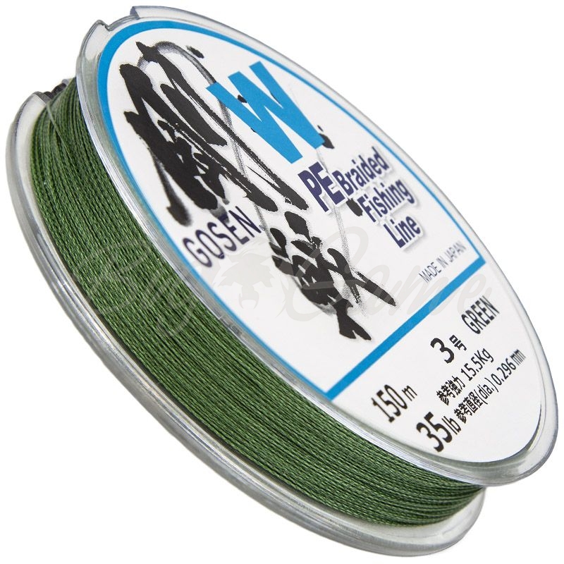 Торговая марка Gosen - популярный производитель плетеных шнуров из Японии. Компания уже более полувека производит рыболовные снасти, но большая часть ассортимента представлена только на внутреннем рынке Японии. Но некоторые модели все же завоевали популярность среди рыболовов по всему миру. Среди таких моделей - плетенка Donpepe Markline PE. Этот шнур обладает высокой устойчивостью к изнашиванию, минимальной растяжимостью, а также способствует увеличению дистанции заброса. Отличительная черта шнуров серии W Green заключается в пропитке специальным составом, который отталкивает воду.