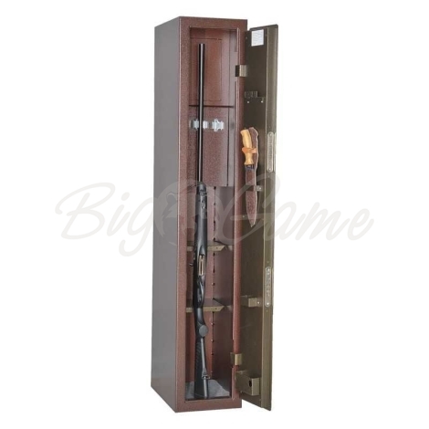 Оружейный сейф ОШ-3Т - используется для хранения ружей высотой до 1380, а так же боеприпасов к ним, приборов и комплектующих.Класс устойчивости к взлому S1. Корпус сейфа толщиной 2 мм, дверь толщиной 2 мм. На задней стенке корпуса расположены отверстия для крепления. Сейф на 3 ружья оснащен тайником иотделением под патроны. Ложементы — металлические держатели с резиновыми роликами. Металлический сейф окрашен полимерной краской. Цвет покрытия: медно-бронзовый антик. Сейф ОШ-3Т — это идеальный выбор для тех, кто ищет надежное и безопасное место для хранения оружия, обеспечивая защиту от несанкционированного доступа и удобство в использовании.