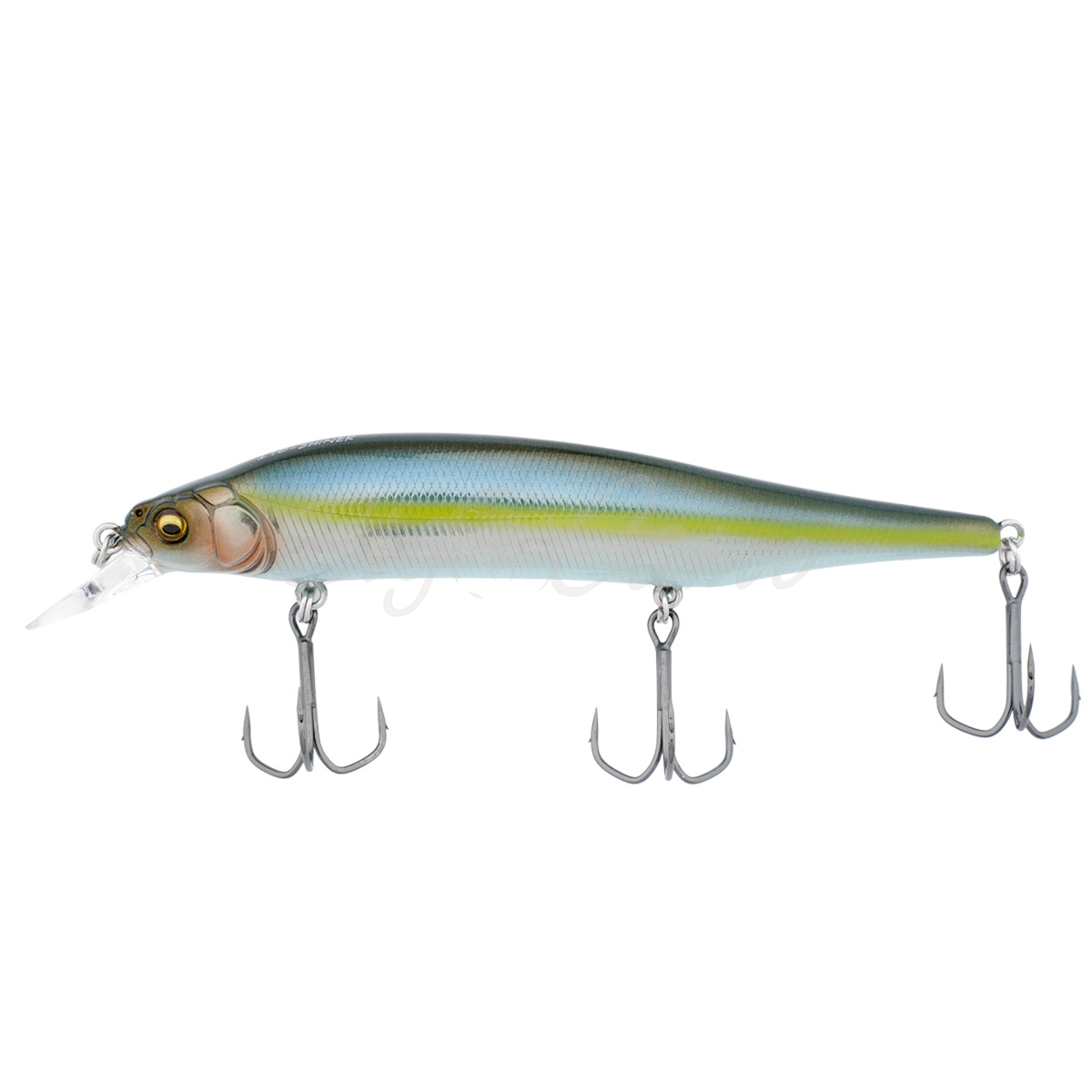 Воблер Megabass Ito Shiner имеет длинное тело, а также фирменные тройники с внешними бороздками. Фишка этого суспендера - его удивительно резкая, рваная игра-змейка при жёстком твичинге в горизонте до двух метров. Также он великолепно ведёт себя при кастинге в различных типах водоёмов, как на течении, так и на стоячей воде. Этот воблер просто находка при скоростной ловле активных, быстрых хищников, благодаря выверенным системам балансировки и дальнего заброса. В теле воблера Megabass Ito Shiner имеется особый канал, обеспечивающий перемещение по нему в хвостовую часть металлических шариков при забросе. При проводке они перемещаются в среднее положение, которое и даёт этой модели хаотичную, резкую игру, чередующуюся с разворотами, а также осевыми колебаниями.