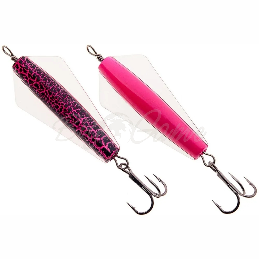 Специальная приманка для ловли лосося и форели, в особенности симы и горбуши. Для анимации рекомендуется использовать троллинговые проводки. Полый канал внутри тела приманки предназначен для пропускания через нее шнура, по которому блесна и будет "гулять" во время проводки. Выпускается уже со смонтированным жестким коротким поводком из проволоки с тройником. Стоит отметить, что наиболее популярный вариант оснастки для таких блесен - смонтировать гибкий поводок общей длиной в районе 10-11 см по которому приманка сможем свободно перемещаться при проводке.