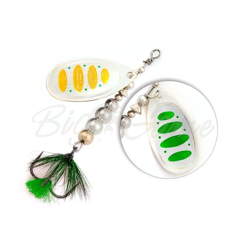 Конструктивно эту серию вращающихся блесен отличает несколько иное, чем у Synchrony строение сердечника. Он у Ball Concept наборный, состоящий из нескольких шариков разного диаметра. Именно за счет сердечника центр тяжести блесны несколько иной, он чуть смещен к задней части тела, что положительно сказывается на дальности и точности заброса. Кроме того, при проводке блесны в водной толще генерируются несколько иные колебания, влияющие на реакцию хищника. Что касается основного «рабочего элемента» блесны – лепестка, то он аналогичной с Synchrony формы, с такой же реверсивной раскраской, отклонение от оси на уровне 40-45 градусов, позволяющее использовать приманку как на течении, так и в стоячей воде. Острейший тройник оснащенный миниатюрной мушкой – завершающий штрих к портрету Ball Concept от Pontoon21.