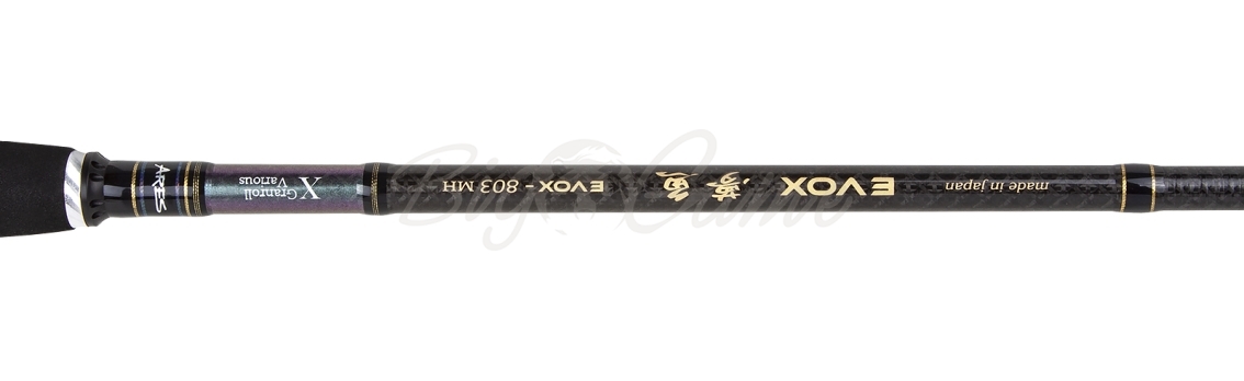 Evox создан по последней моде: с применением графитов Torayca M40X и T1100G, технологии Nanoalloy, графитовой многонаправленной оплётки и топовой фурнитуры Fuji Torzite Titanium.