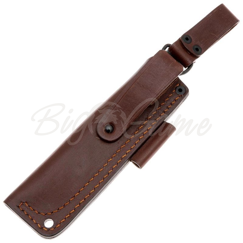 В комплекте с ножом идут кожаные ножны, которые обеспечивают безопасное хранение и транспортировку ножа, а также удобный доступ к нему в любой момент. Конструкция ножен позволяет носить нож как на поясе, так и на рюкзаке, что делает его ещё более универсальным.