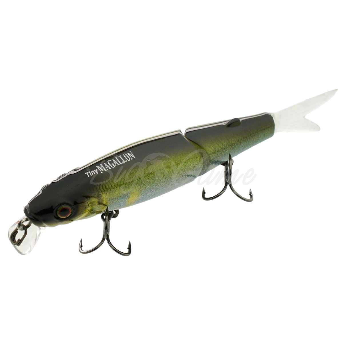 Tiny Magallon – двухсоставной воблер с оригинальным дизайном. В хвостовой части располагается мягкий, но стойкий к щучим зубам, хвостик, который при проводке дополнительно соблазняет рыбу. Даже при малой амплитуде рывков спиннинга совершает размашистые развороты и кульбиты в воде, соблазняя даже не активного хищника. Одна из самых добычливых приманок по щуке!