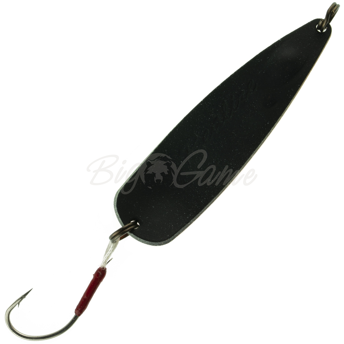 Обращает на себя пристальное внимание использование крючка из толстой проволоки с «лопаткой» вместо ушка, способного выдержать критические нагрузки, а также метод его крепежа к блесне. Дело в том, что наличие подобных крючков исключает возможность их монтажа с помощью заводного кольца. В связи с этим, японские специалисты применили для крепления прочную капроновую нить. Благодаря такому решению, блесна не только выиграла в балансировке при проводке, но «приуспела» в эстетике внешнего вида. К тому же, значительно сокращает вероятность схода рыбы.