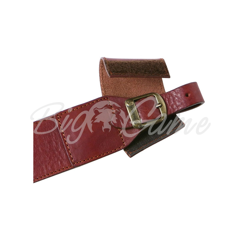 Узкий, кожаный, элегантный погонный ремень для охотничьих карабинов. Петли для антабок, на которых расположены латунные пряжки, закрываются специальными кожаными клапанами на липучках Velcro®. Такая конструкция предотвращает нежелательный контакт металлических частей ремня с дорогостоящим деревом карабина, защищая его от царапин и потёртостей.