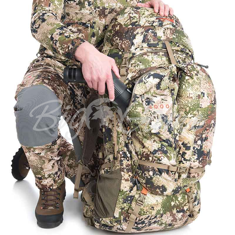 Рюкзак Mountain Hauler 4000 идеален для однодневной охоты или охоты с ночевкой, когда вам приходится одновременно выносить мясо и рога. Базовый объем рюкзака в 60,6 л при необходимости может быть увеличен на 13,1 л. Для транспортировки мяса предназначена внутренняя грузовая полка, а рога пристегиваются специальными ремнями. Прочная рама из алюминиевого сплава 6061 T-6 с регулируемой подвеской позволяет переносить грузы до 68 и более кг. В двух наружных вертикальных карманах можно разместить дождевую одежду, накидку или оптическую трубу. Боковые карманы подходят для треног, трекинговых палок и бутылок с водой. На удобном поясном ремне с поролоном тройной плотности можно разместить c помощью липучек кобуру пистолета, медвежий аэрозоль и другие принадлежности для рюкзаков SITKA.