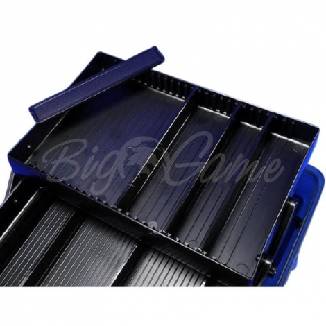 нижний отсек глубиной 65мм с разделителями–подставками для искусственных приманок , что способствует их более безопасному хранению и улучшенной вентиляции